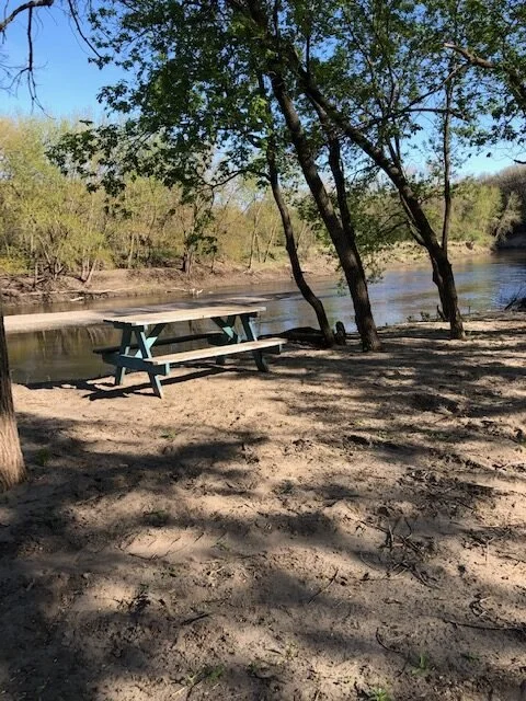 The site rests near a sandy spot along the Big Sioux River on a ridge well above the water line. View out over the river to a farm on the opposite bank. Spend your time with wild turkeys, geese, and an occasional deer. Site is on the far edge of an artist retreat, but still private. Spend time hiking the river bank or gravel country roads, fish in the river, take part in any Retreat activities if available, photography opportunities, enjoy an evening campfire under the stars.