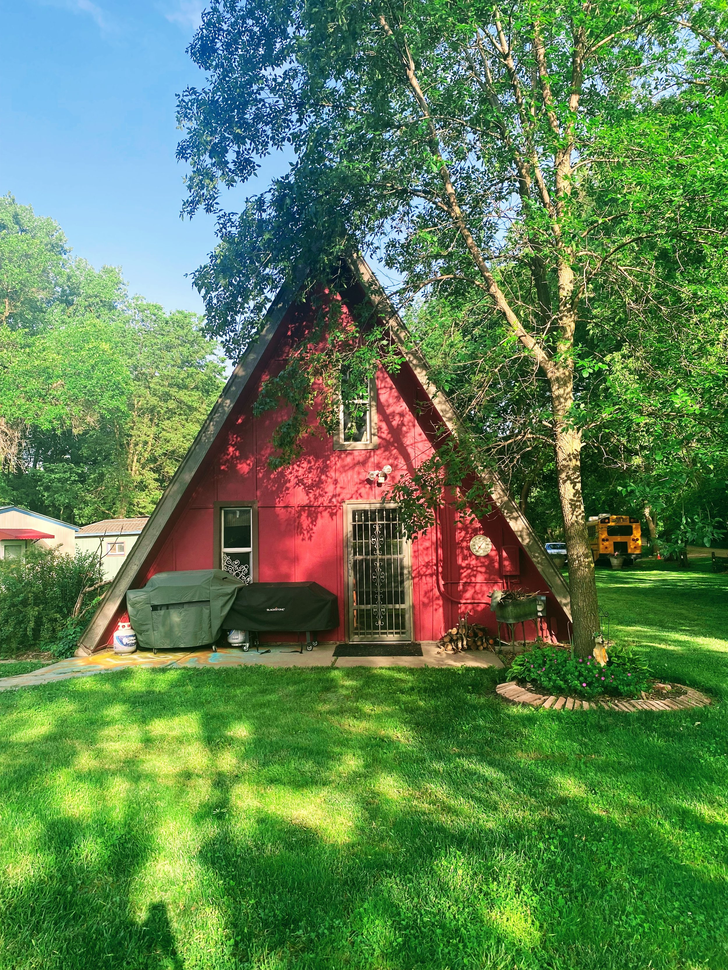 Property updates at The Retreat happen constantly; we get better and better! The 100′ x 40′ main hall is perfect for larger workshops, concerts, poetry readings, small theatrical productions, classes, and other social gatherings and rentals in April through November. The A-Frame is a unique space for recitals, presentations, meetings, or a sleeping space for up to 6 people. There is a Woodworking Shop; Artist Studio; screened-in outdoor patio; playground; huge bonfire pit; and room to camp or explore.